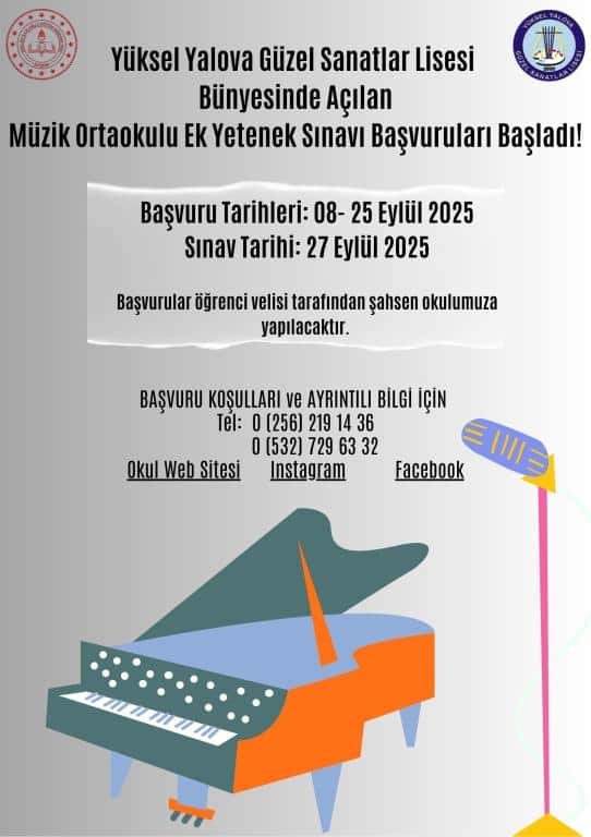 2025-2026 Eğitim Öğretim Yılında Okulumuz Bünyesinde Açılacak Olan Aydın Güzel Sanatlar Müzik Ortaokulu İçin Ek Yetenek Sınavı Başvuruları Başladı !!!!